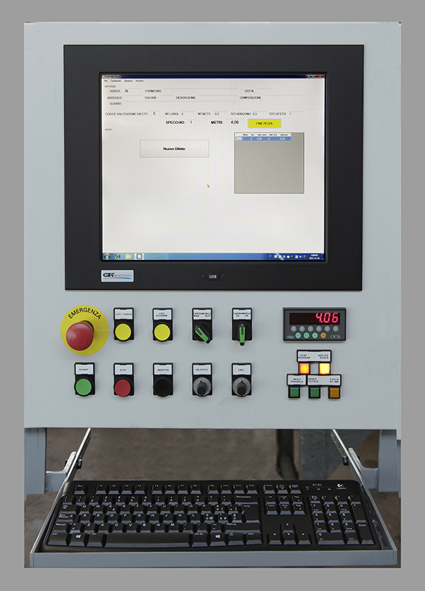 The measurement of the fabric is obtained by an electronic LED meter counter with the possibility of setting the programmed stop.