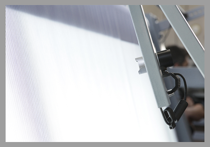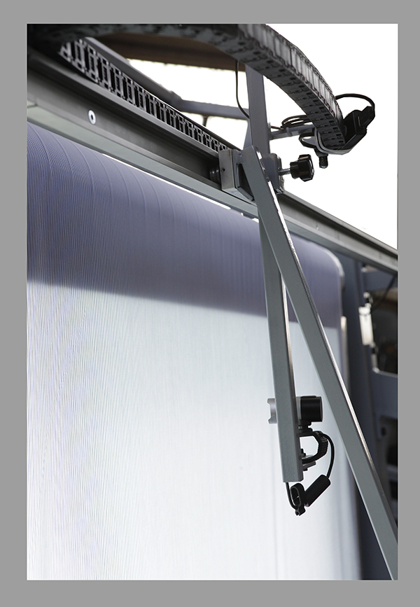 The alignment of the fabric roll occurs automatically by electric photocells.