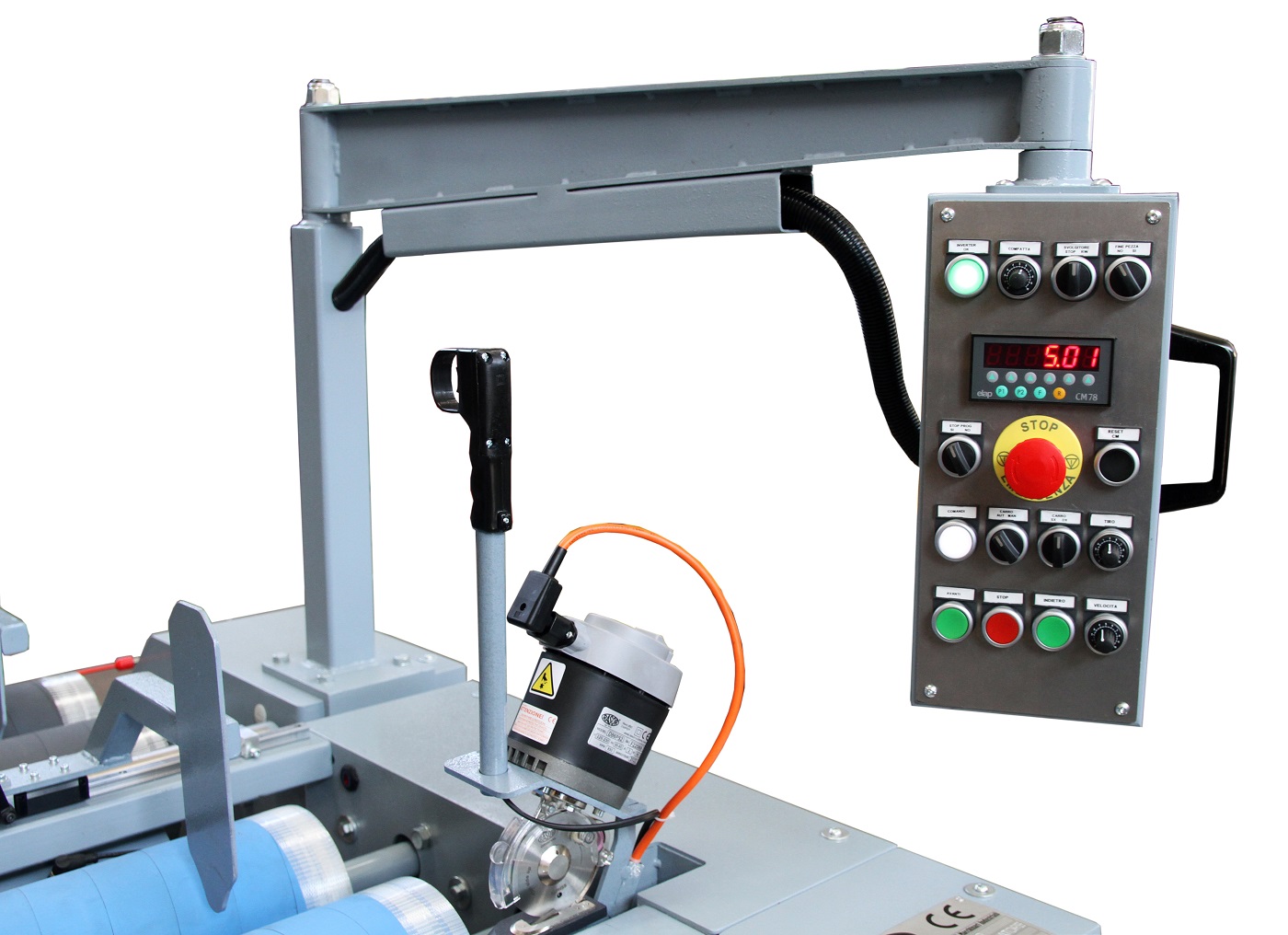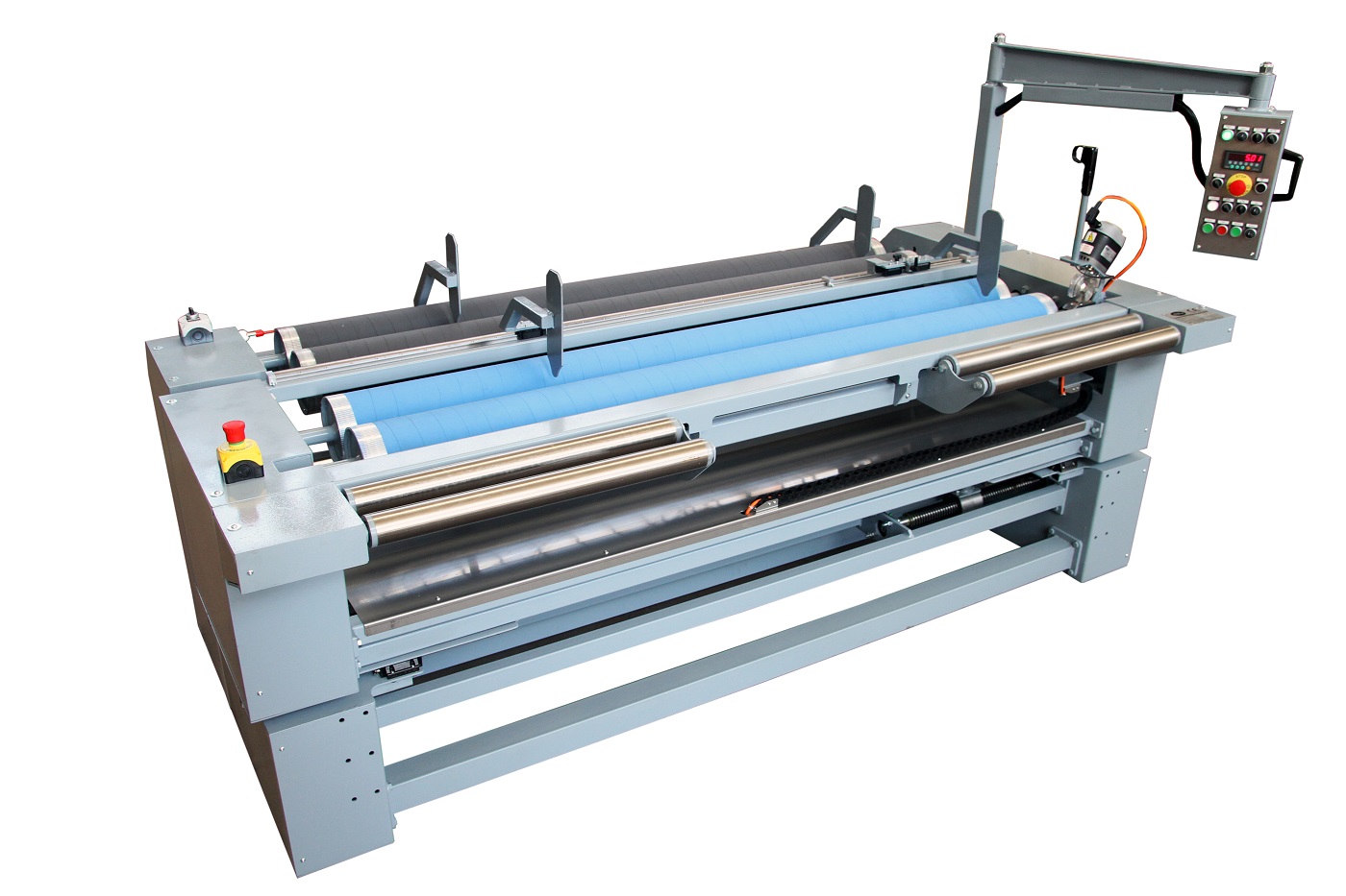 La misurazione del tessuto avviene tramite contametri elettronico integrato al cilindro di tiro dal quale è possibile impostare la fermata programmata.